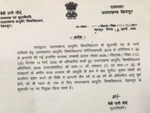 राज्यपाल बेबी रानी मौर्य ने उत्तराखंड आयुर्वेदिक विश्वविद्यालय में कुलपति के पद पर डॉ सुनील कुमार जोशी नियुक्त की नियुक्ति की है ।