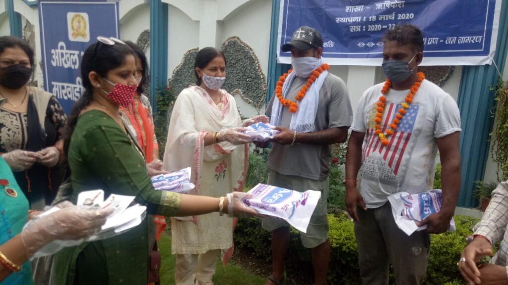 ऋषिकेश- अखिल भारतीय मारवाड़ी महिला संस्था की ओर से नगर निगम के स्वच्छता प्रहरियों के संग रक्षाबंधन का त्योहार मनाया गया। देहरादून रोड स्थित समाजसेवी नवीन अग्रवाल के आवास पर आयोजित कार्यक्रम में संस्था से जुड़ी महिलाओं ने स्वच्छता प्रहरियों को रक्षा सूत्र बांधें। भाई बहन के अमिट प्रेम के रूप में मनाए जाने वाले रक्षाबंधन पर्व की पूर्व संध्या पर रविवार को अखिल भारतीय मारवाड़ी महिला संस्था की ओर से कार्यक्रम का आयोजन किया गया था। जिसमें कर्मचारियों को हस्तनिर्मित साबुन से बनी राखियां पहनाई गई ताकि हाथ होने में उनको कोई परेशानी न हो और राखियां भी लम्बे समय तक बंधी रहे।