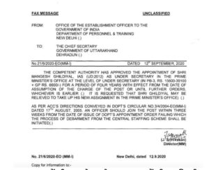 इस पत्र की आधिकारिक तौर पर अभी पुष्टि नही हो पा रही है। रूद्रप्रयाग में डीएम रहे व मौजूदा समय में डीएम टिहरी के पद पर तैनात मंगेश घिल्डियाल अगले सप्ताह तक दिल्ली के लिये रवाना हो सकते है।