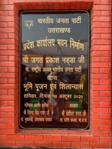 उत्तराखंड भारतीय जनता पार्टी के लिए आज ऐतिहासिक दिन था जब भारतीय जनता पार्टी के राष्ट्रीय अध्यक्ष श्री जेपी नड्डा ने उत्तराखंड में भारतीय जनता पार्टी के नए कार्यालय भवन का शिलान्यास किया । वे वर्चुअल माध्यम से कार्यक्रम में शामिल हुए।