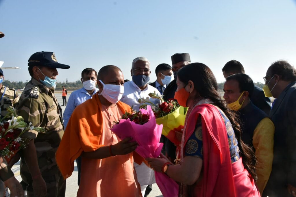 विश्व प्रसिद्ध बद्रीनाथ -केदारनाथ यात्रा के दर्शनार्थ पहुंचे उत्तराखंड के लाल व उत्तर प्रदेश के मुख्यमंत्री योगी आदित्यनाथ का रविवार की दोपहर जौली ग्रांट एयरपोर्ट पर उत्तराखंड के मुख्यमंत्री त्रिवेंद्र सिंह रावत, नगर विकास मंत्री मदन कौशिक, उच्च शिक्षा मंत्री धन सिंह रावत सहित महापौर ऋषिकेश अनिता ममगाईं ने स्वागत और अभिनंदन किया। यूपी सीएम के उत्तराखंड आगमन की जानकारी देते हुए महापौर ने बताया कि अयोध्या में दीपावली पर्व का ऐतिहासिक आयोजन संपन्न कराने के पश्चात उत्तर प्रदेश के मुख्यमंत्री योगी आदित्यनाथ दो दिवसीय दौरे में उत्तराखंड पहुंचे हैं जहां वे विश्व प्रसिद्ध बद्रीनाथ धाम और केदारनाथ धाम के दर्शन करेंगे। महापौर के अनुसार प्रदेश के शीर्ष नेतृत्व के साथ उन्हें भी उत्तर प्रदेश के मुख्यमंत्री का स्वागत और अभिनंदन करने का मौका मिला ।