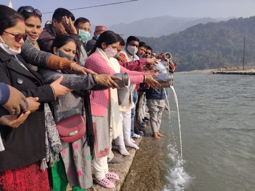 देवभूमि ऋषिकेश में भाजपा कार्यकर्ताओं ने नगर निगम महापौर अनिता ममगाई के नेतृत्व में भाजपा प्रभारी दुष्यंत कुमार का जन्म दिवस बेहद हर्षोल्लास के साथ मनाया। इस मौके पर करोड़ों देशवासियों की आस्था का प्रतीक माने जाने वाली मां गंगा का केसर युक्त दूध से रुद्राभिषेक किया। बड़ी संख्या में भाजपाइयों की मौजूदगी में मंत्रोच्चार के बीच मां गंगा का यह पूजा अनुष्ठान संपन्न हुआ। इस अवसर पर महापौर ने कहा कि प्रदेश की राजनीति में दुष्यंत कुमार एक चमकता हुआ सितारा है । आज हम सब उनके जन्म दिवस के अवसर पर उनके दीर्घायु की मंगल कामना करते हैं।उनके लंबे राजनीतिक अनुभव का लाभ मिशन 2022 में पार्टी को निश्चित मिलेगा।उनके दिशा निर्देशन और मार्गदर्शन के चलते एक बार फिर से भाजपा प्रचंड बहुमत के राज्य की सत्ता पर काबिज होगी। मां गंगा में दुग्धाभिषेक करने वालों में राज्यमंत्री सुरेंद्र मोघा, पूर्व राज्य मंत्री संदीप गुप्ता, भाजपा जिला मंत्री पंकज शर्मा, पार्षद विजय बडोनी, विजेंद्र मोगा, अनीता प्रधान, अनीता रैना, मनीष मनवाल, हितेंद्र पवार, पवन शर्मा, राजपाल ठाकुर, संजय वर्मा, सुजीत यादव, रणवीर सिंह, संजीव कुमार,रविंद्र कश्यप, प्रिया ढकाल, शीलू अग्रवाल, महेंद्र वर्मा,विजय बिष्ट ,गोविंद चौहान,गौरव कैंथोला आदि शामिल थे।