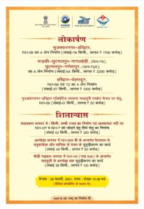लोकार्पण – मुजफ्फरनगर -हरिद्वार NH 54 का 4 लेन निर्माण किया गया है,जिसकी लंबाई 78 किलोमीटर है और इसमें 1750 करोड़ कुल राशि लगी है।