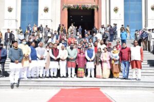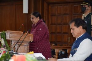 गैरसेंण- भराडीसैण विधानसभा भवन में बजट सत्र के प्रथम दिन राज्यपाल बेबी रानी मौर्य के अभिभाषण से पूर्व उत्तराखंड विधानसभा अध्यक्ष प्रेमचंद अग्रवाल ने राज्यपाल को पुष्पगुच्छ भेंट कर स्वागत किया। उत्तराखंड की ग्रीष्मकालीन राजधानी गैरसैंण में विधानसभा का बजट सत्र की सदन की कार्यवाही 11:00 बजे राज्यपाल के अभिभाषण से प्रारंभ हुई।इससे पूर्व राज्यपाल को गार्ड ऑफ ऑनर दिया गया साथ ही राष्ट्रगान के साथ सदन की कार्यवाही शुरू की गई।राज्यपाल के सदन में प्रवेश करने से पूर्व मुख्यमंत्री, उत्तराखंड विधानसभा अध्यक्ष सहित मंत्री गणों एवं विधायकों ने राज्यपाल का स्वागत किया।