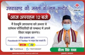 उत्तराखंड की जनता के नाम आज 12 बजे मुख्यमंत्री संदेश देंगे।