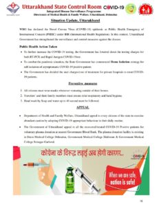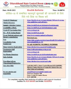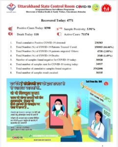 उत्तराखंड में आज कोरोनावायरस के 8390 पॉजिटिव मरीज पाए गए पिछले 24 घंटे में 118 लोगों की मृत्यु हुई। About The Author Himalaya sandesh See author's posts Post Views: 490 Continue Reading Previous ऑक्सीजन सिलेंडर पहुँचे देहरादून, बलूनी ने दिया प्रदेश वासियों को संदेश।Next देहरादून जिला कोविड प्रभारी मंत्री ने लिया ज़िले का जायज़ा। Leave a Reply Cancel replyYour email address will not be published. Required fields are marked *Comment * Name * Email * Website Save my name, email, and website in this browser for the next time I comment. More Stories उत्तराखंड एक्सक्लूसिव खास खबर देहरादून राज्य उत्तराखंड: अप्रैल और मई महीने में गर्मी सताएगी, मैदान से लेकर पहाड़ तक चढ़ेगा पारा April 1, 2025 Himalaya sandesh उत्तराखंड एक्सक्लूसिव खास खबर देहरादून राज्य मौसम अपडेट : उत्तराखंड में मौसम 17 मार्च तक रहेगा खराब March 14, 2025 Himalaya sandesh उत्तराखंड एक्सक्लूसिव खास खबर देहरादून राज्य रुद्रप्रयाग में बड़ा हादसा, हादसे में तीन युवकों की मौके पर मौत March 8, 2025 Himalaya sandesh