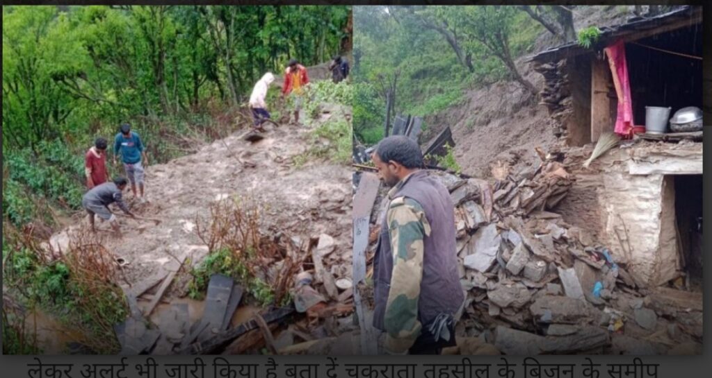 देहरादून। तहसील चकराता के अंतर्गत ग्राम पंचायत जोगियों के ग्राम क्वांसी के बिजनाड छानी में तेज बारिश के बाद फटा बादल ,