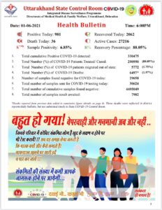 उत्तराखंड में कोरोनावायरस के 981 पॉजिटिव मरीज पाए गए पिछले 24 घंटे में 36 लोगों की मृत्यु हुई.