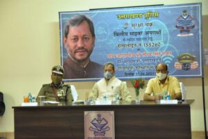 पर मुख्यमंत्री ने ई-सुरक्षा चक्र बुकलेट का विमोचन भी किया। कृषि मंत्री सुबोध उनियाल ने उत्तराखण्ड पुलिस के अधिकारियों को बधाई देते हुए कहा कि दिन-प्रतिदिन साइबर अपराध तेजी से बढ़ रहे हैं। इसको रोकने के लिए प्रभावी कदम उठाने जरूरी है। हेल्पलाईन नम्बर जारी करने वाला उत्तराखण्ड देश का तीसरा राज्य बना इसके लिए उत्तराखण्ड पुलिस बधाई के पात्र है। इस अवसर पर जानकारी दी गई कि विगत कुछ वर्षो में साईबर अपराध के मामलो मे लगातार बढोत्तरी हुई है। वित्तीय एवं गैर वित्तीय मामले सामने आ रहे है। हाल ही मे गृह मंत्रालय भारत सरकार द्वारा पीड़ितो की त्वरित सहायता प्रदान कराने हेतु एक साईबर हेल्प लाईन नम्बर 155260 जारी किया गया है। उत्तराखण्ड देश का तीसरा राज्य बना जिसे गृह मंत्रालय से साईबर हेल्पलाईन नम्बर 155260 के संचालन की अनुमति प्राप्त हुयी। इस नम्बर पर किसी भी प्रकार के वित्तीय साईबर अपराध की सूचना दी जा सकती है तथा पीड़ित को अतिशीघ्र राहत देने का प्रयास किया जायेगा। इस नई प्रणाली के लिये स्पेशल टास्क फोर्स के अधीन साईबर क्राईम पुलिस स्टेशन में एक ई-सुरक्षा चक्र कन्ट्रोल रुम की स्थापना की गयी है। इस अवसर पर पुलिस महानिदेशक अशोक कुमार, महानिदेशक सतर्कता, वी. विनय कुमार, अपर पुलिस महानिदेशक, पी.वी.के. प्रसाद, पुलिस महानिरीक्षक अमित सिन्हा, संजय गुंज्याल, पूरन सिंह सिंह रावत, मुख्तार मोहसिन, पुलिस उपमहानिरीक्षक, नीलेश आनन्द भरणे,निदेशक पी.टी.सी राजीव स्वरूप, जिलाधिकारी टिहरी ईवा आशीष श्रीवास्तव, एस.एस.पी टिहरी सुश्री तृप्ति भट्ट आदि उपस्थित थे।