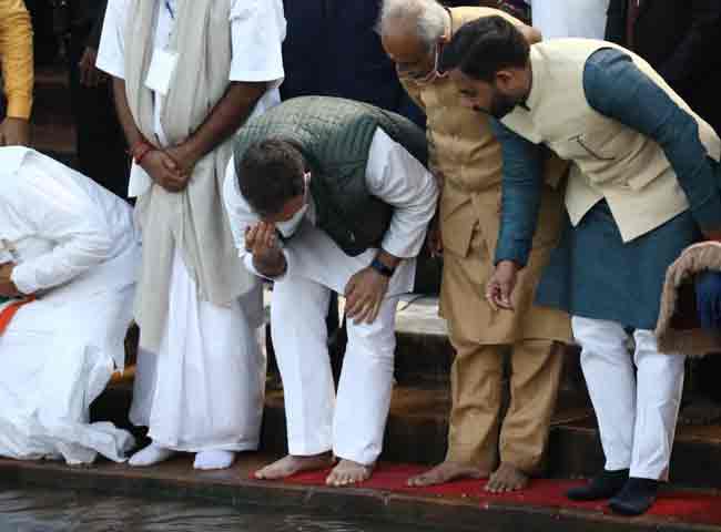 राहुल गांधी श्री गंगा सभा के अध्यक्ष और महामंत्री की अगुआई में हरकी पैड़ी ब्रह्मकुंड पर सनातन हिंदू धर्म के पूरे विधि विधान के साथ गंगा आरती की। इससे पहले कांग्रेस के पूर्व अध्यक्ष राहुल गांधी ने हरिद्वार में कार्यकर्त्ताओं को वर्चुअल संबोधित किया। उन्होंने सरकार बनने पर चार वादे भी किए। वहीं दोपहर को ऊधम सिंह नगर के किच्छा में किसानों से संवाद किया।