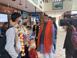दिल्ली पहुंचे उत्तराखण्ड के कैबिनेट मंत्री गणेश जोशी, ने आज उक्रेन की युद्ध भूमि से सकुशल मातृभूमि भारत लाए गए उत्तराखण्ड के 10 छात्रों का उत्तराखण्ड सदन दिल्ली में स्वागत किया।
