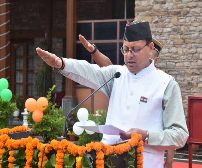 स्वतंत्रता की 75वीं वर्षगांठ पर सीएम धामी ने किया ध्वजारोहण, राष्ट्रीय एकता की दिलाई शपथ ।