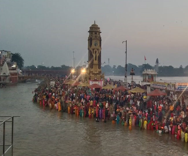 हरिद्वार के हरकी पैड़ी समेत अन्य गंगा घाटों पर तड़के बड़ी तादाद में छठ व्रती पहुंचे और कमर भर जल में खड़े होकर सूर्य भगवान के उदय होने का इंतजार करते दिखे।