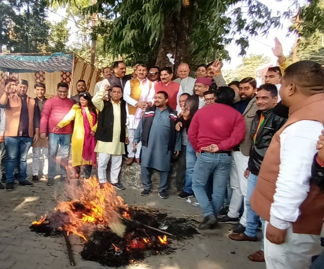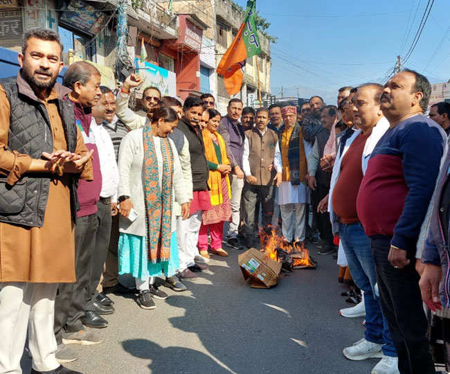 बिलावल भुट्टो की आपत्तिजनक टिप्पणी से उत्तराखंड में भाजपाई भड़क गए हैं। पार्टी ने आज पूरे प्रदेश में पाकिस्तान और उसके विदेश मंत्री भुट्टो का पुतला फूंका। प्रदेश अध्यक्ष महेंद्र भट्ट ने पार्टी के नेतृत्व में सभी पदाधिकारियों, कार्यकर्ताओं, मोर्चों, प्रकोष्ठों और विभागों ने विरोध जताया। देहरादून में घंटाघर से आक्रोश रैली निकाली गई। वहीं, हल्द्वानी में कार्यकर्ताओं ने पूतला फूंका। वहीं, प्रदेशभर में अलग-अलग स्थानों पर विरोध प्रदर्शन और पुतला दहन किया गया।