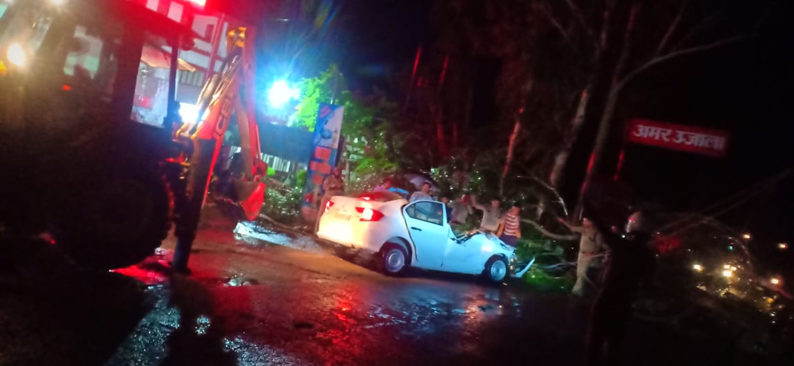 रामपुर रोड में यूकेलिप्टस का पेड़ चलती कार पर गिरने से कार चालक की मौके पर ही मौत हो गई। इससे दो घंटे तक यातायात बाधित रहा। निजी वाहनों के साथ ही रोडवेज बसें, सिडकुल के वाहनों की लंबी कतारें लग गईं। देर रात तक पुलिस रेस्क्यू ऑपरेशन में जुटी रही।