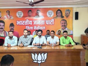 आज भारतीय जनता युवा मोर्चा के प्रदेश अध्यक्ष श्रीमान शशांक रावत जी के द्वारा महा जनसम्पर्क अभियान को लेकर नैनीताल में प्रेस कॉन्फ्रेंस का आयोजन किया गया जिसमें उन्होंने युवा मोर्चा के आगामी विभिन्न कार्यक्रमों को लेकर अवगत करवाया, जिसमें कहा गया कि प्रधानमंत्री श्री नरेन्द्र मोदी जी की सरकार के 9 वर्ष पूरे होने पर प्रत्येक जिले में मण्डल स्तर तक कार्यकम होने है। इन कार्यक्रमों में युवा लाभार्थी सम्पर्क अभियान, नव मतदाता सम्मेलन, बाइक यात्रा व ऑन लाईन क्विज प्रतियोगिता मुख्य है। इन सब के माध्यम से युवाओं को केन्द्र और राज्य सरकार की विभिन्न योजनाओं से अवगत कराया जायेगा व बताया जाएगा कि वे इनसे कैसे लाभ उठा सकते है। नव मतदाता सम्मेलन के माध्यम से फर्स्ट टाइम वोटर को जोड़ा जाएगा एवं मण्डल स्तर पर बाइक यात्रा का भी आयोजन कराया जाना है। जिसमें प्रवास कार्यक्रम भी है जिसके द्वारा युवाओं से सीधा संवाद किया जायेगा व जन प्रिय सरकार के कार्यों को जन-जन के द्वार पर जाकर जागरूक करा जाएगा। इस दौरान मंच पर प्रदेश अध्यक्ष जी के साथ श्री नीरज बिष्ट प्रदेश उपाध्यक्ष, गौरव जोशी प्रदेश सह मीडिया प्रभारी, जिलाध्यक्ष युवा मोर्चा नैनीताल एवं हिमांशु मिश्रा आदि कार्यकर्ता मौजूद रहे।