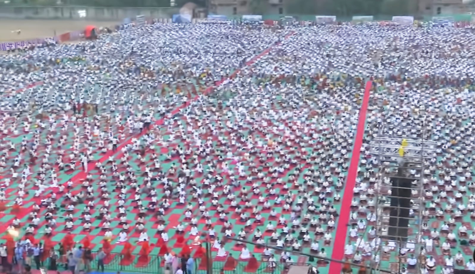 योग गुरु बाबा रामदेव ने कहा कि योग ने तिलक वालों, टोपी वालों, पगड़ी और जटा वालों को एक मंच पर एक साथ ला दिया है बिना किसी भेदभाव के। आज यहां सभी एक साथ योग कर रहे हैं और निरोग हो रहे हैं। तन स्वस्थ रहेगा तो मन मस्तिष्क भी स्वस्थ रहेगा, जिससे सकारात्मक विचार आएंगे और नकारात्मकता समाप्त हो जाएगी। सांप्रदायिक सौहार्द और आपसी सद्भाव बढ़ेगा, राष्ट्र विकसित होगा, समाज खुशहाल बनेगा और भारत विश्व गुरु।