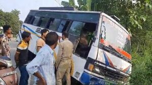 हादसे का शिकार हुई यात्रियों से भरी बस